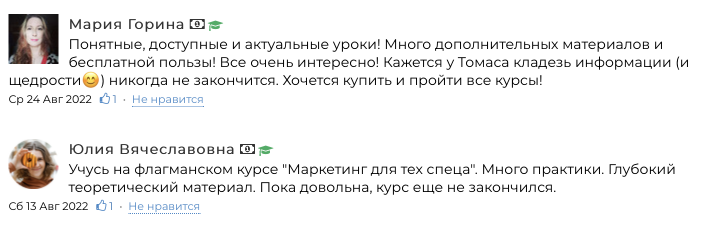 На любом тарифе доступны чаты с участниками где можно будет задать любой вопрос касательно обучения, платформы или работы с клиентами. Чат будет в Телеграм и ВКонтакте